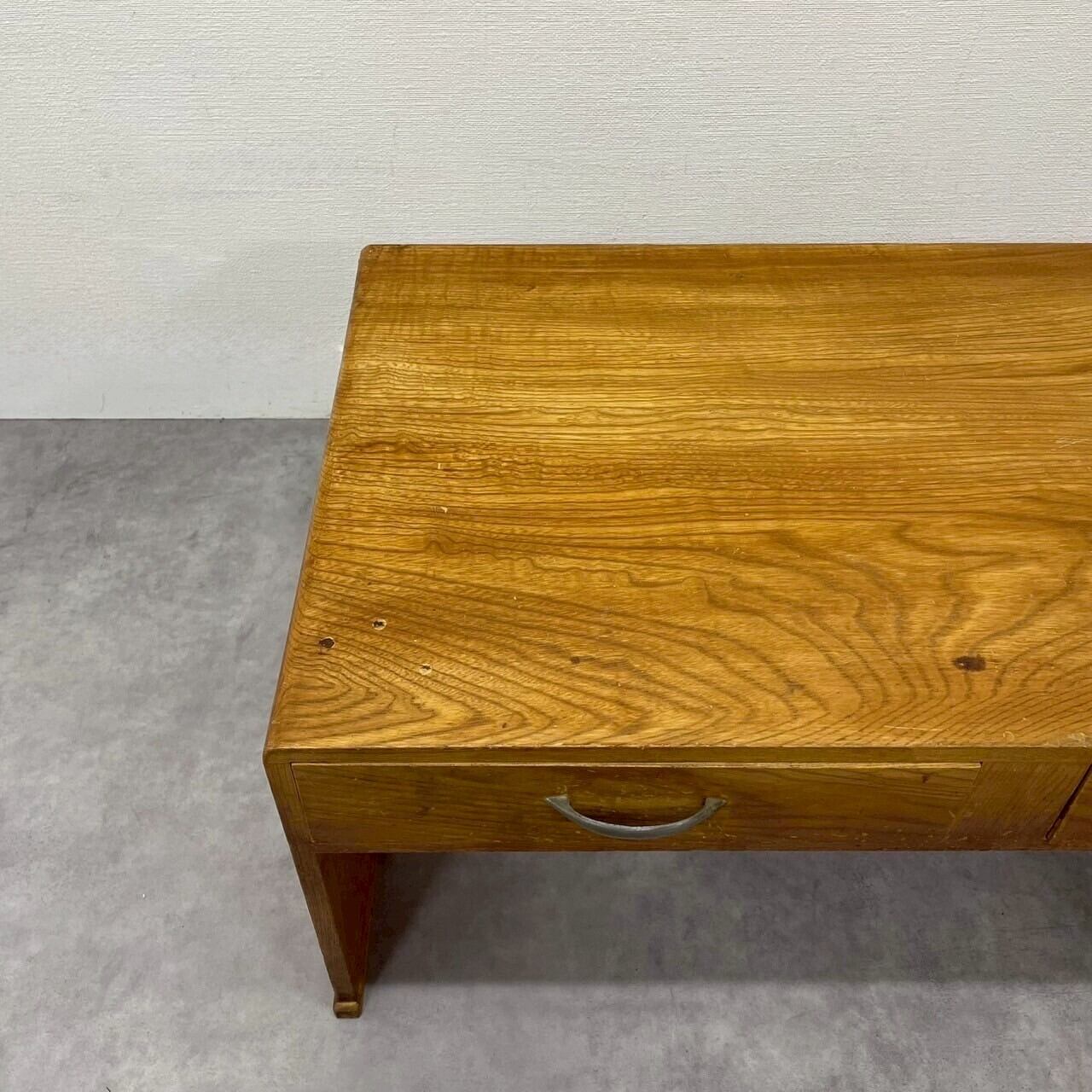 上質な木材の質感と、端正なフォルムが魅力のヴィンテージの文机です。経年により深みを増した木肌は、使い込まれた家具ならではの温もりを感じさせ、空間に落ち着きと趣をもたらしてくれます。