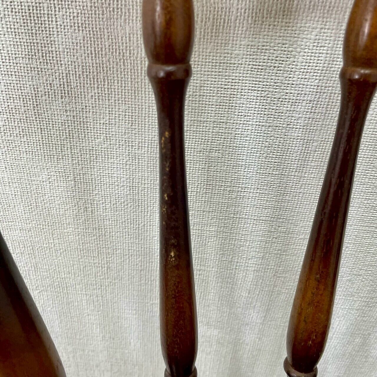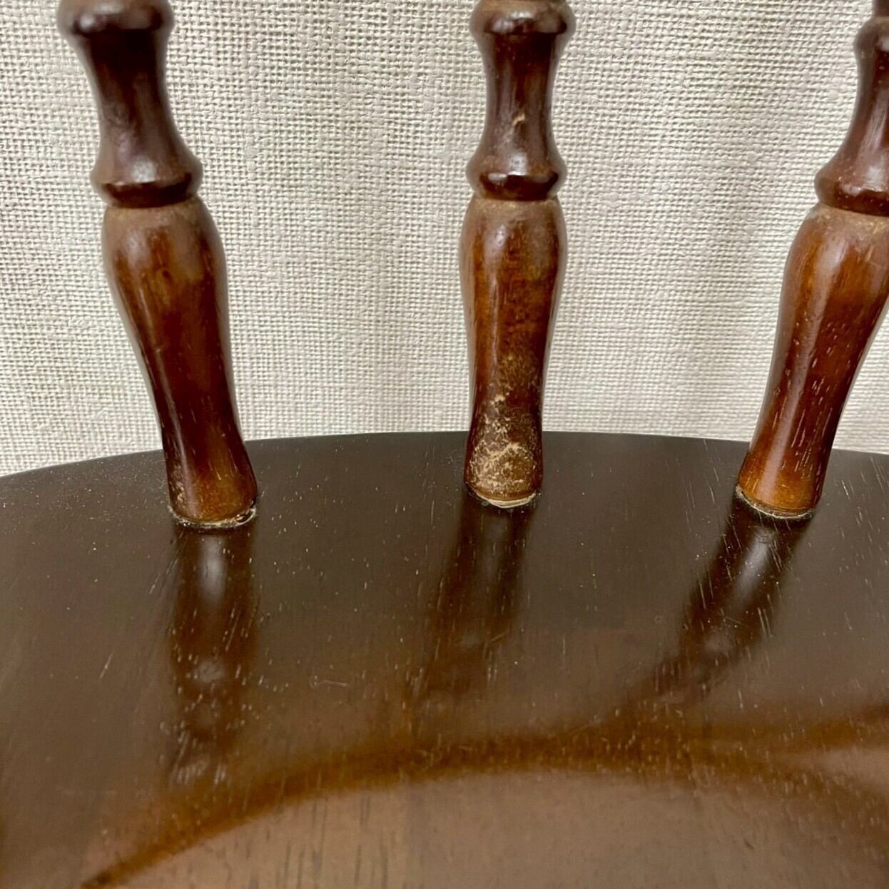 背もたれに整然と並ぶスピンドルと、緩やかな曲線を描くトップレールが美しく、クラシカルで端正な佇まいが印象的です。