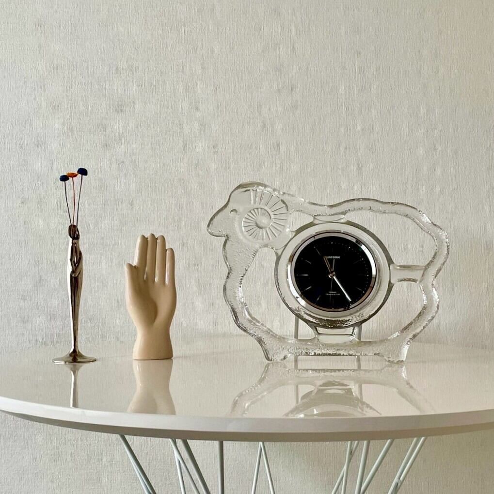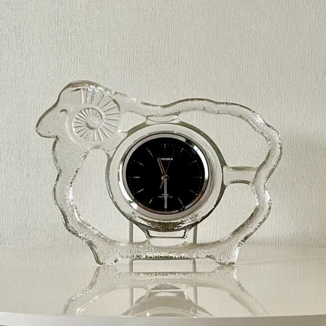 厚みのあるクリアガラスでかたどられた羊モチーフのフォルムが印象的で、光を受けてきらりと輝く佇まいが目を惹くデザイン。