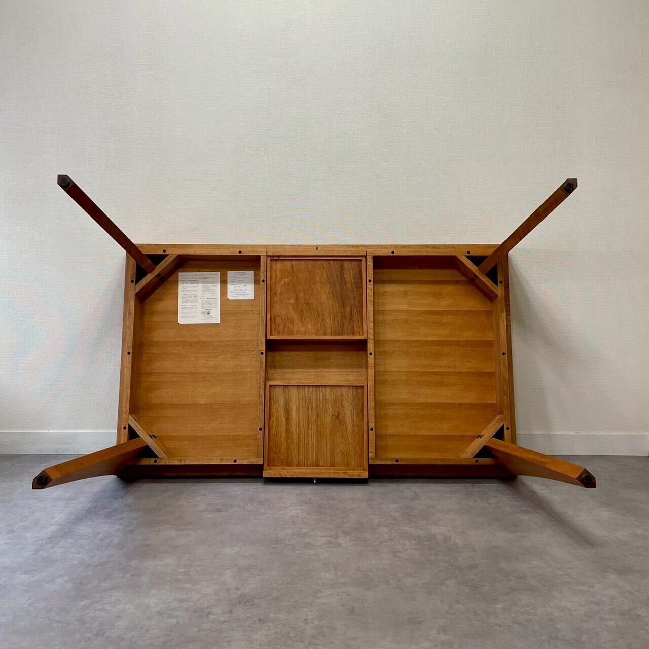 天板下には両サイドから引き出せる引き出しが備えられており、カトラリーや文具、小物などをすっきり収納できる便利な仕様となっております。
