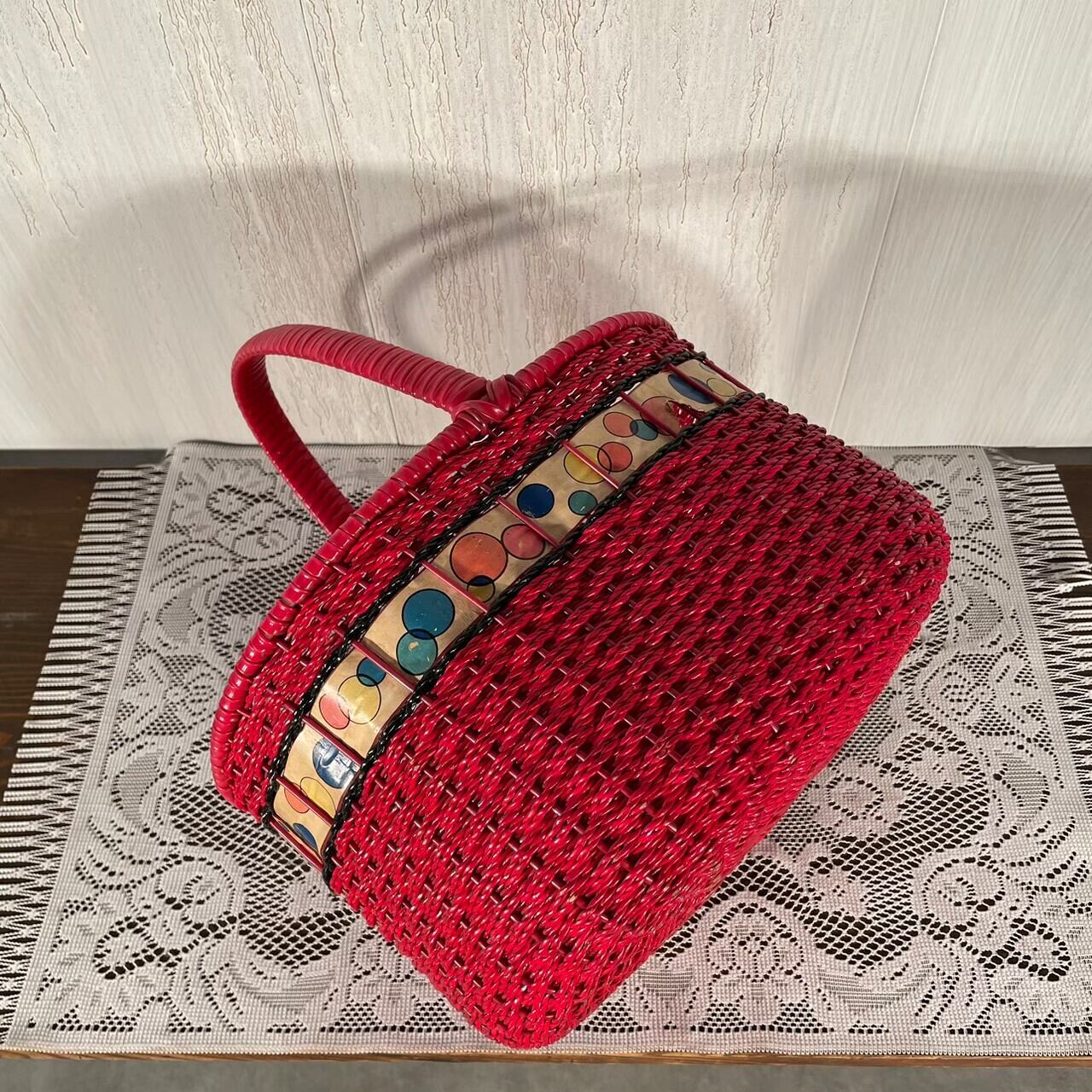 チェリーレッドにレトロな柄が個性的なデザインです。
