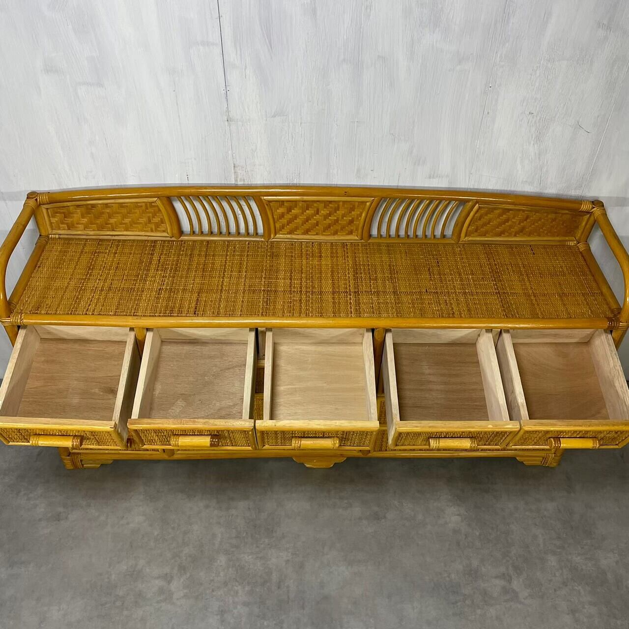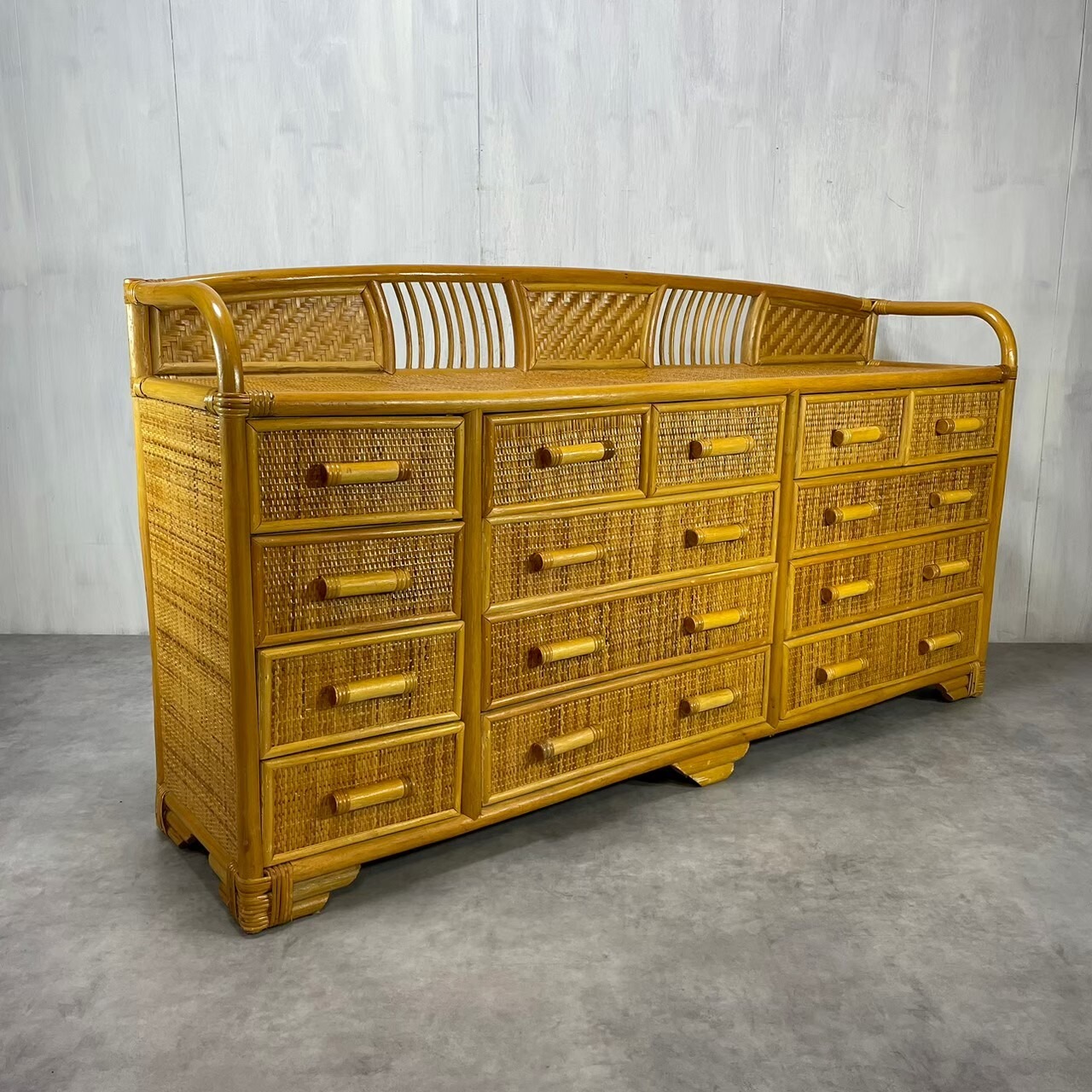 ラタンチェストの中でも珍しい、14杯とワイドなサイズ感で収納量も多く、ライフスタイルに合わせて便利にお使い頂ける一品です。