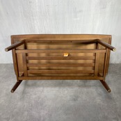 真っ直ぐ伸びる美しい杢目が印象的なデコラトップの天板は、どこか懐かしさを感じさせてくれます。