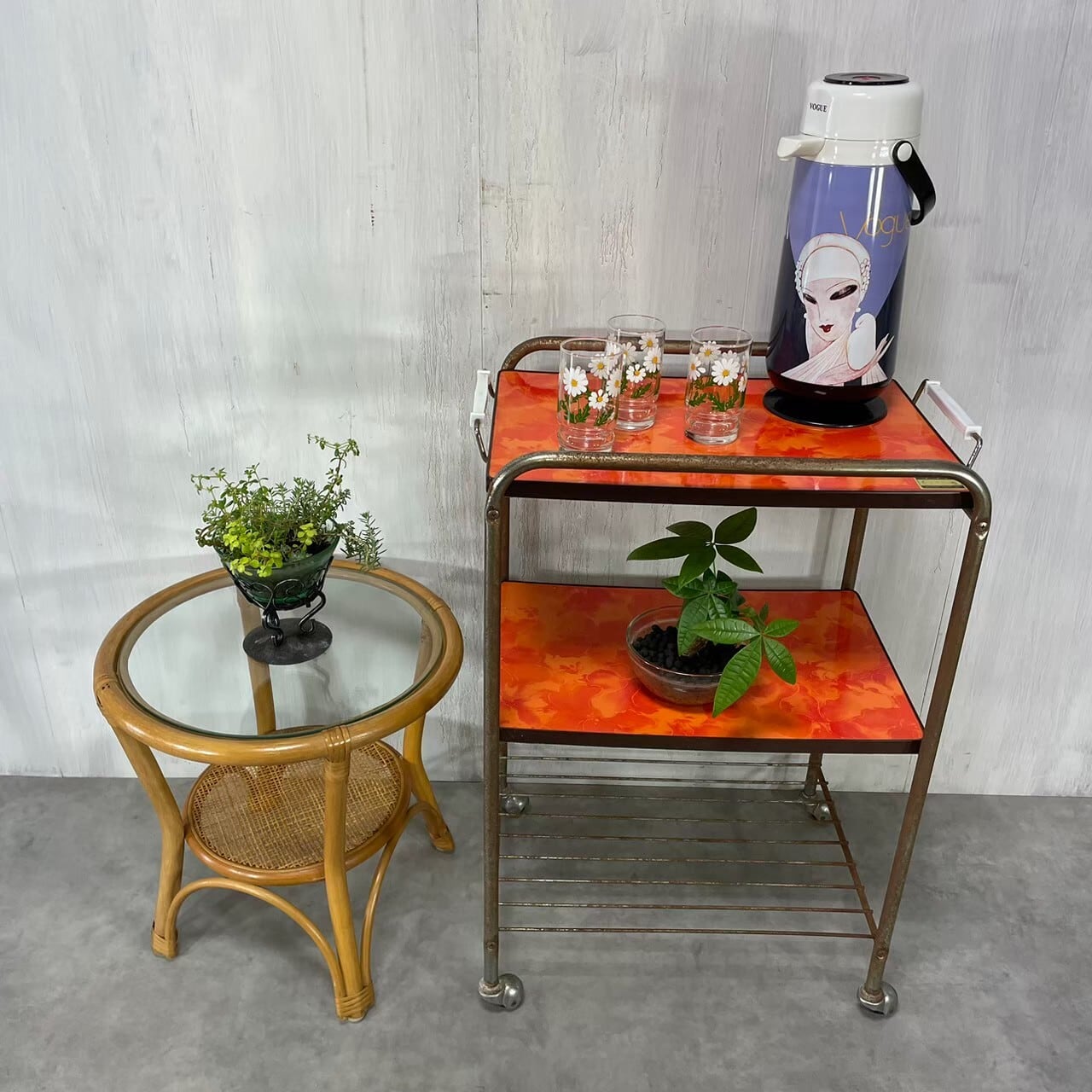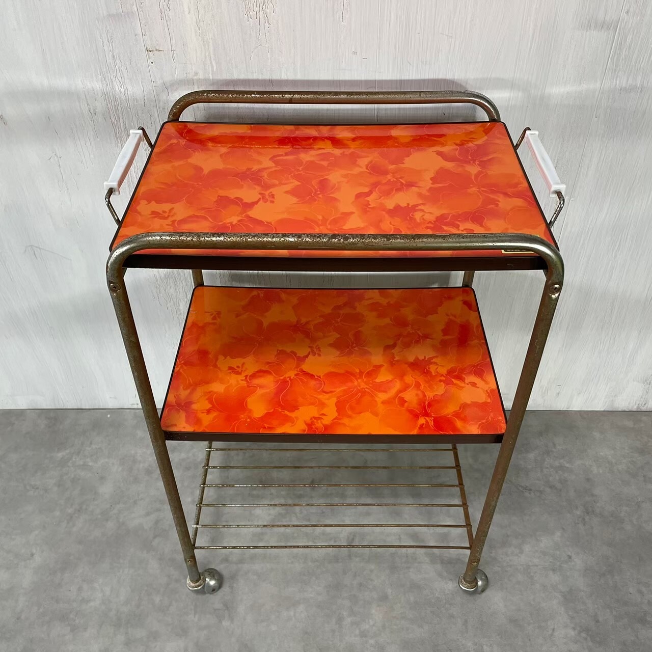昭和レトロな花柄のキッチンワゴン
