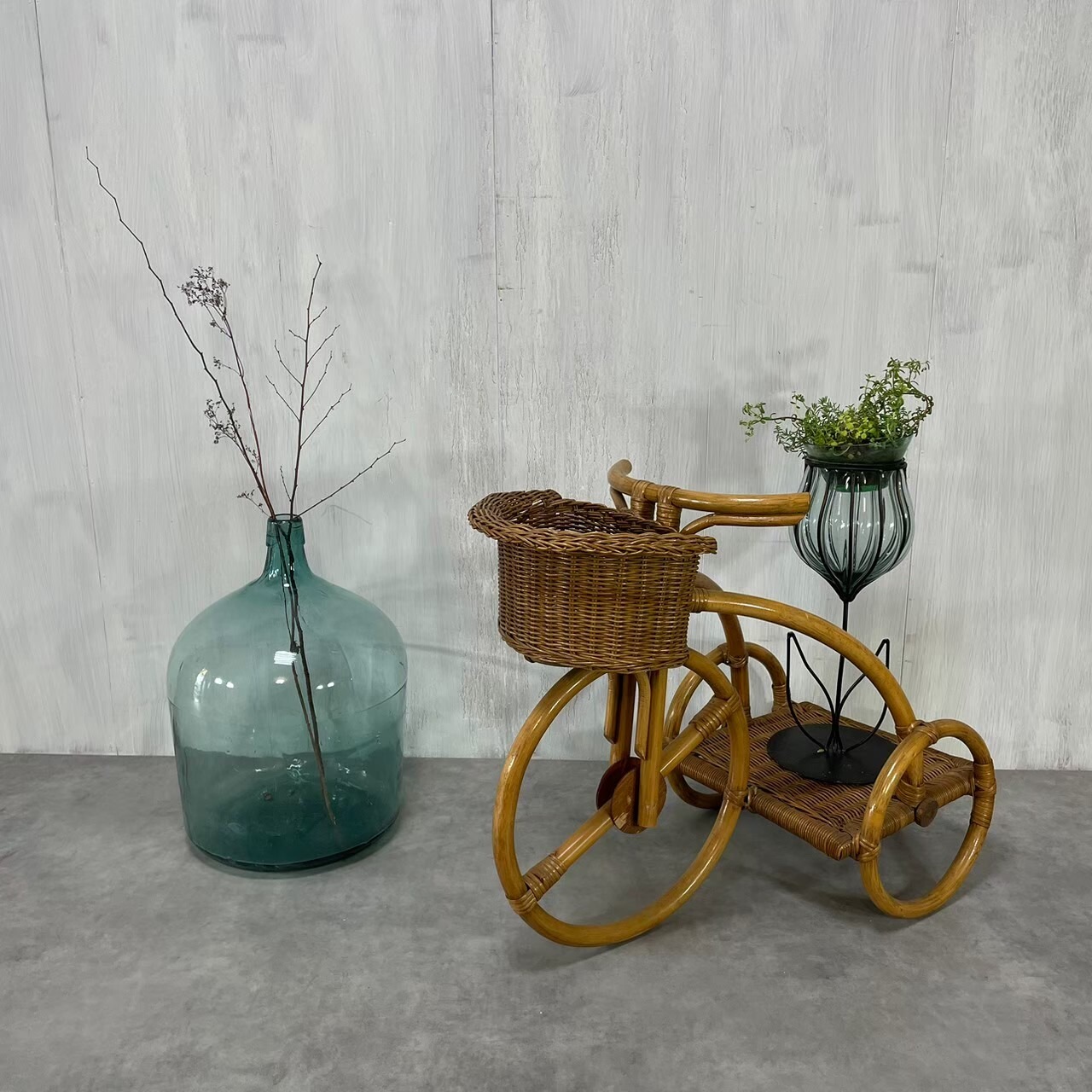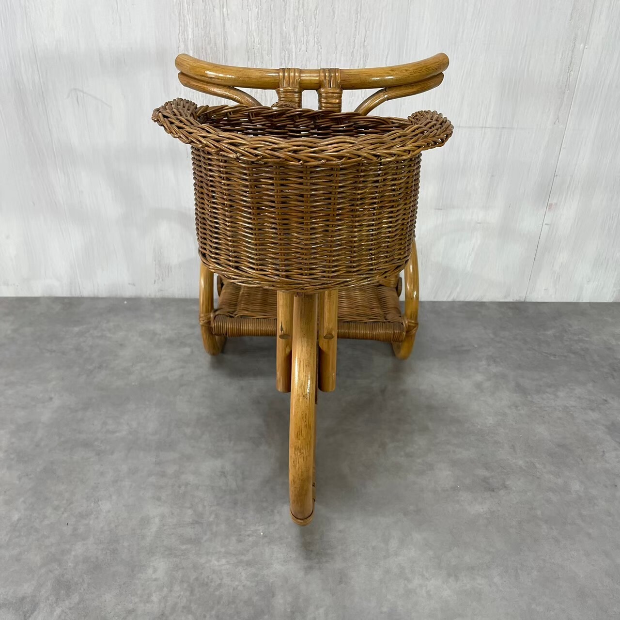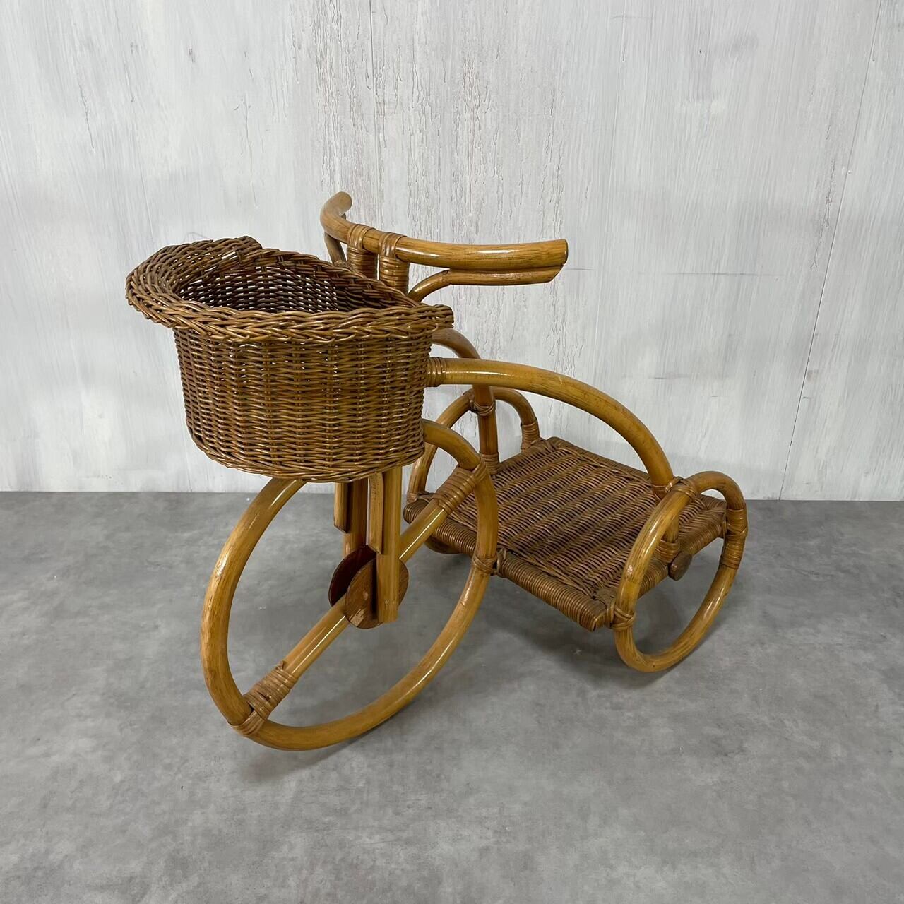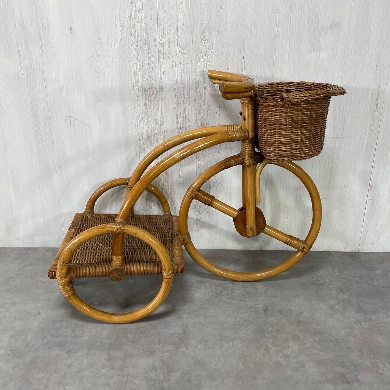 古いラタンの三輪車型フラワースタンド