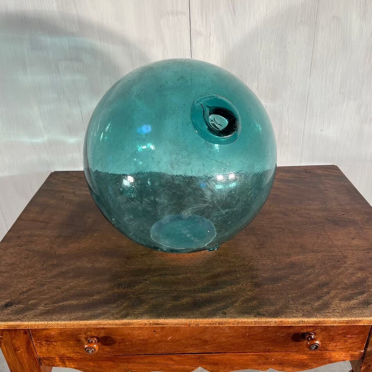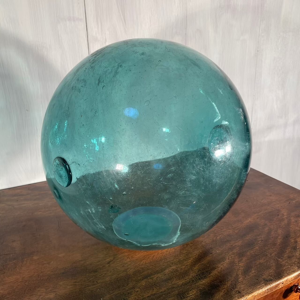 今ではあまりみなくなった大きなガラスの浮き玉です。