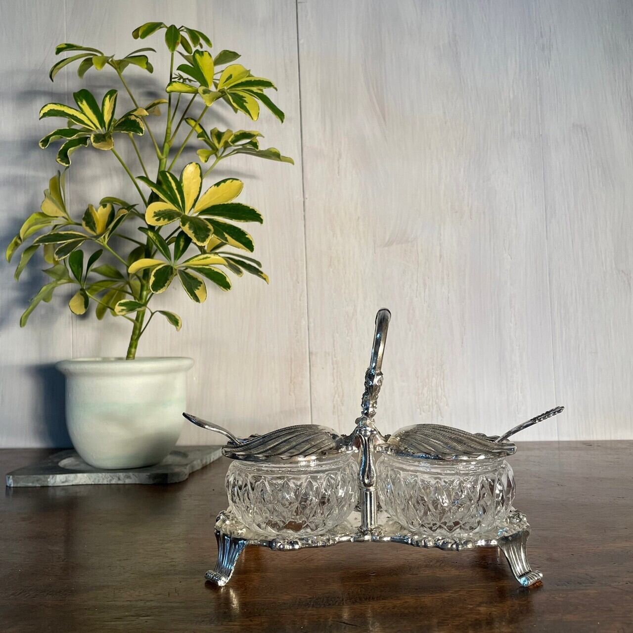 貝殻型の蓋が可愛いガラスのシュガーポット