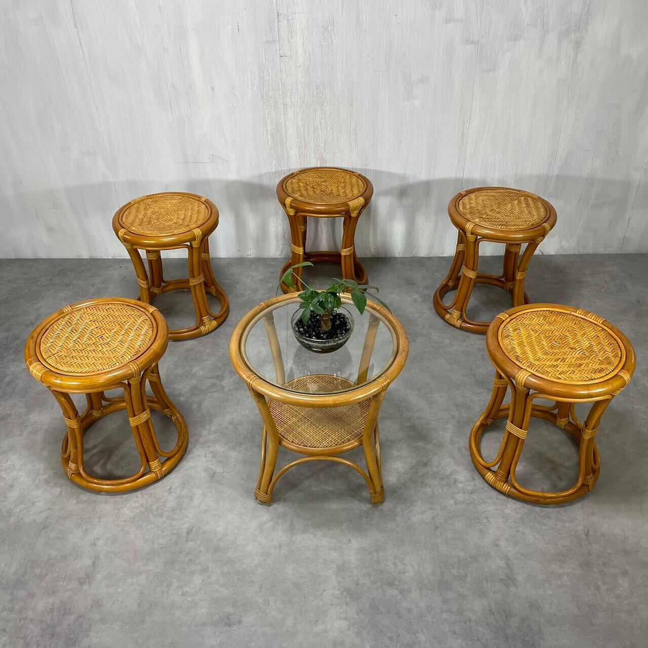 温かみのあるヴィンテージラタンスツール (E)