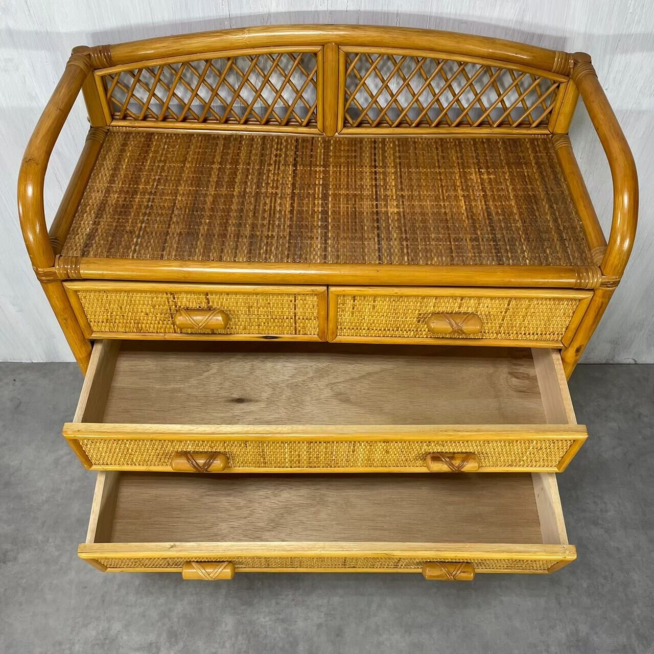 温かみのある色味のラタンチェスト