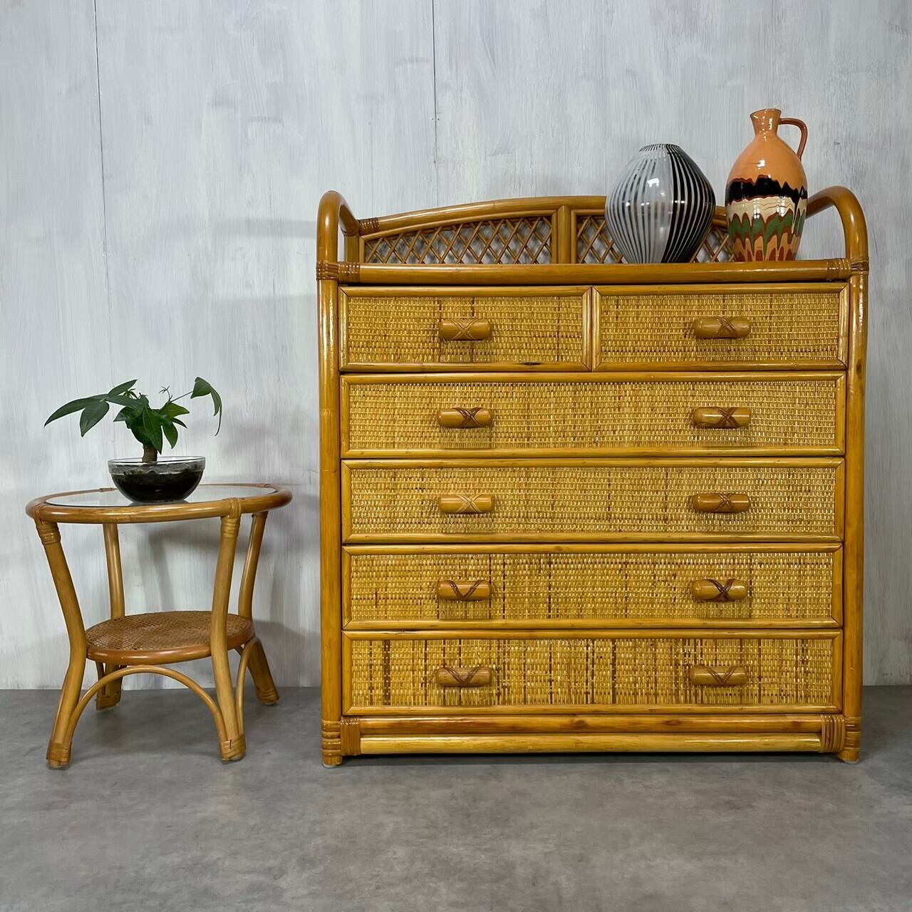 ヴィンテージのラタンならではの経年による色合いが素敵です。