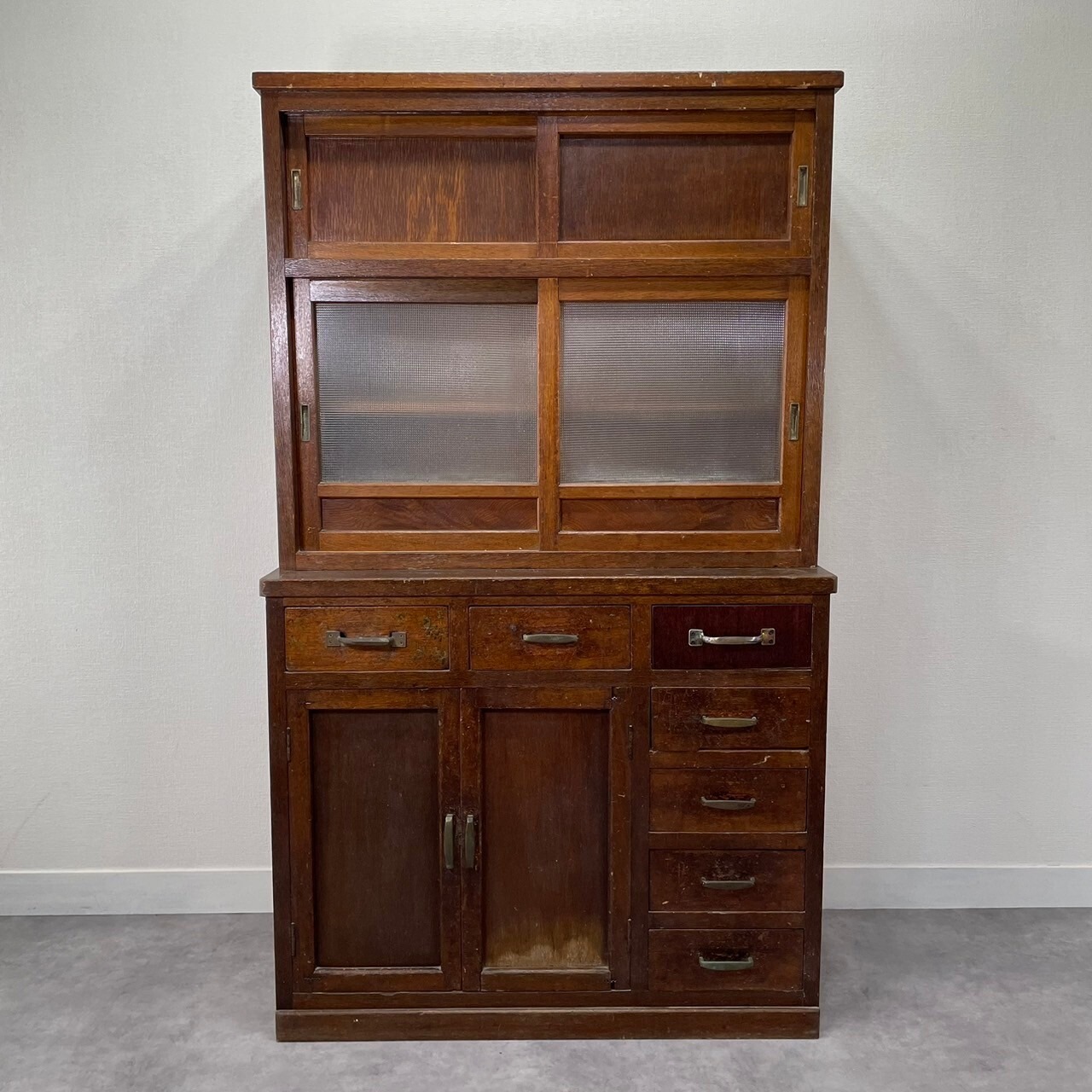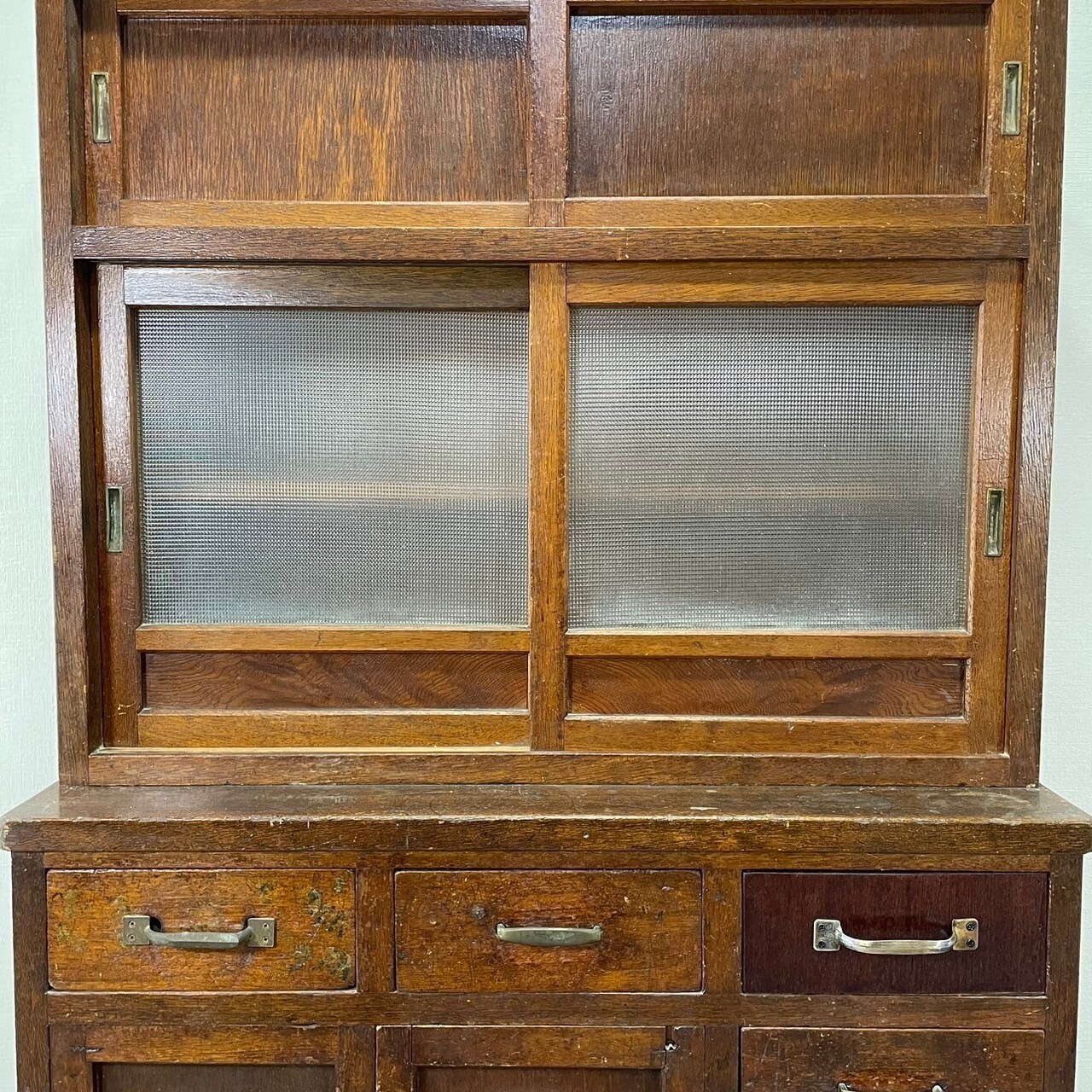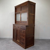古いチェッカーガラスの食器棚