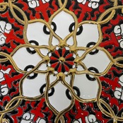 赤、白、金色で彩られた色彩、柄ともに美しく、空間を華やかに演出してくれる一品です。