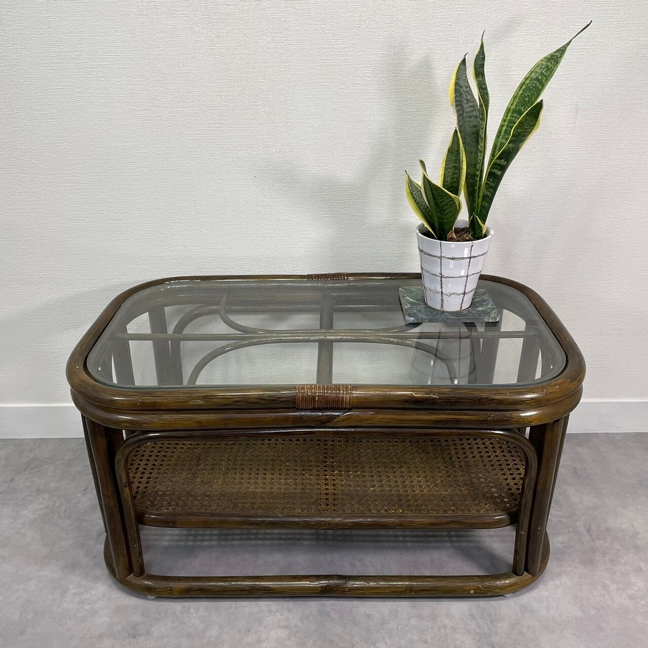 色合い素敵なラタンのヴィンテージテーブル