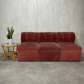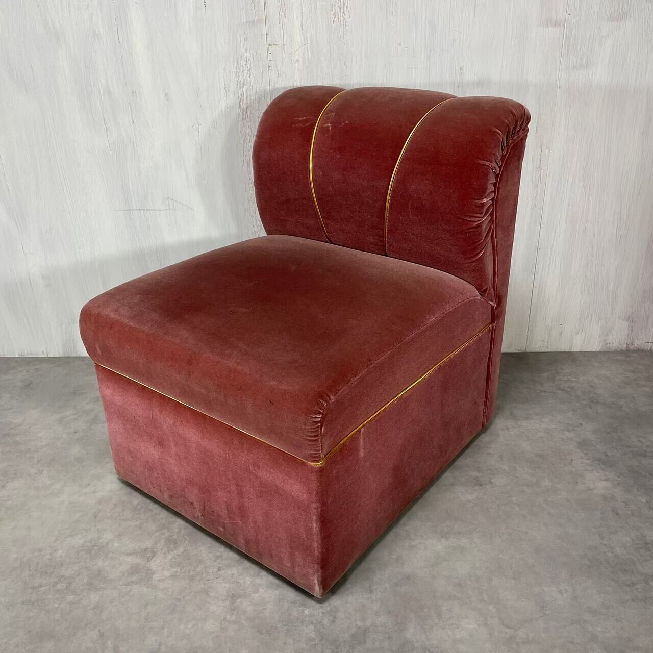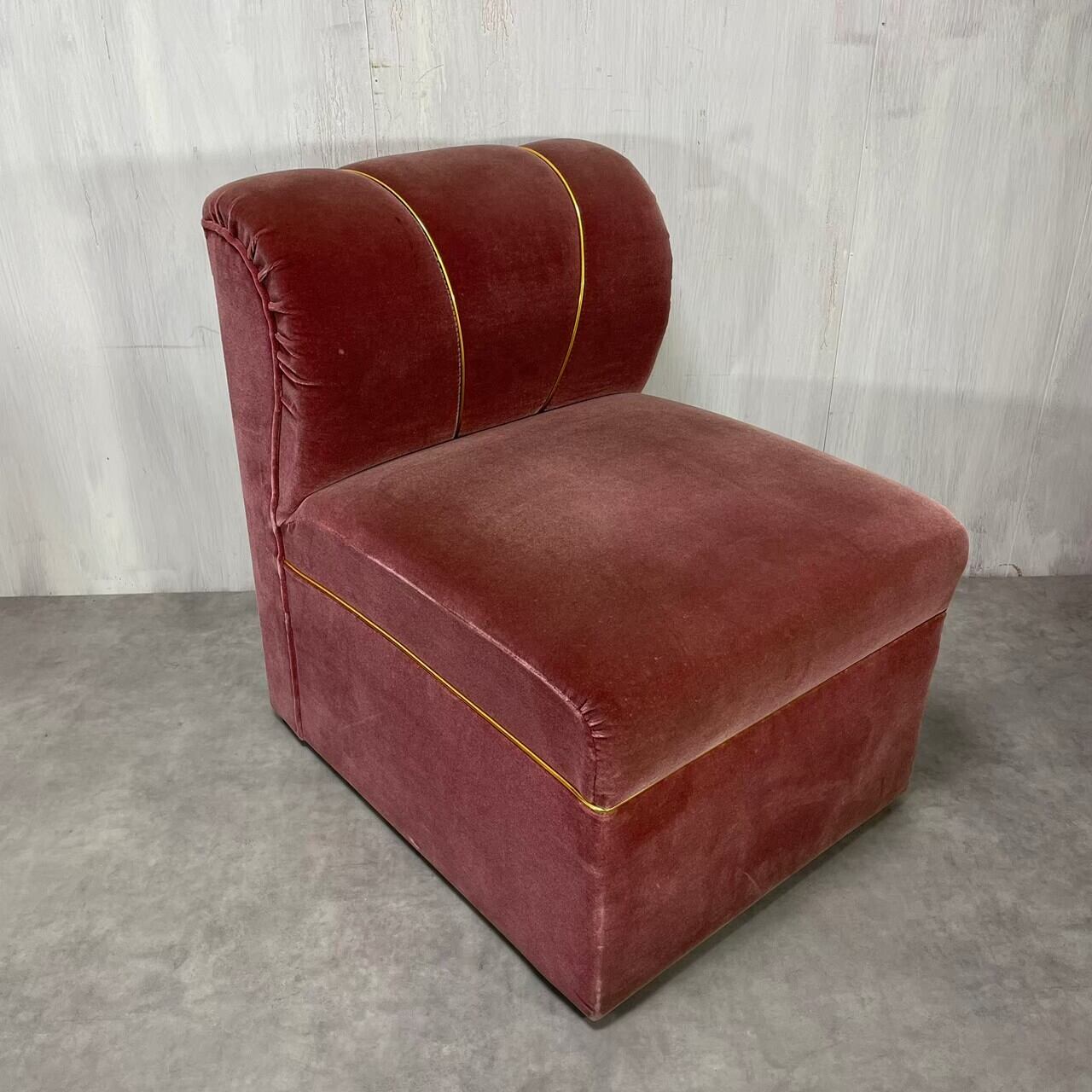 ピンクパープルのモケット地にゴールドのパイピングがアクセントになっており、華やかで存在感があります。