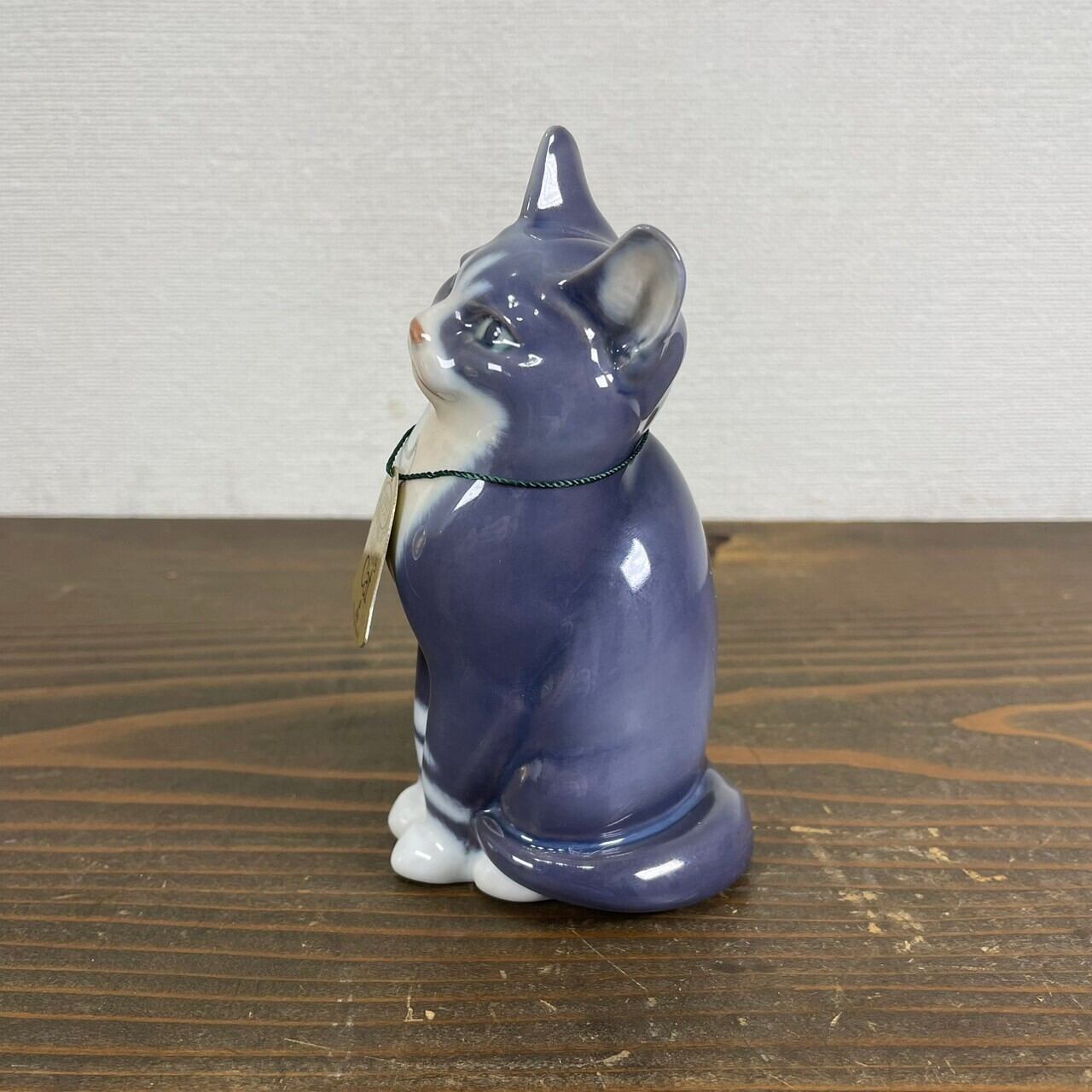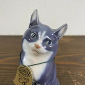 ブルーグレー×ホワイトのハチワレ柄の愛らしい磁器人形で、猫の特徴がよく表現されております。