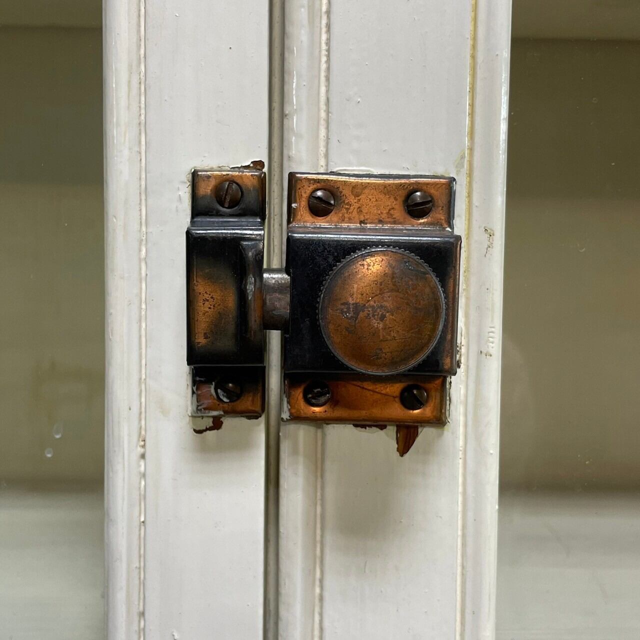 オフホワイトの優しいペイントにブロンズカラーの金具がアクセントとなり目を惹きます。