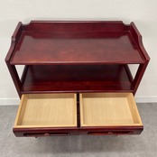 引き出し2杯と扉収納を備えており、小ぶりですが収納力にも優れております。