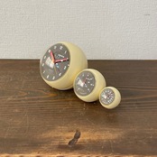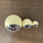 時計、温度計、湿度計の3つの球体が連なったスペースエイジライクなデザイン。
