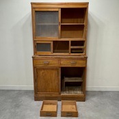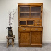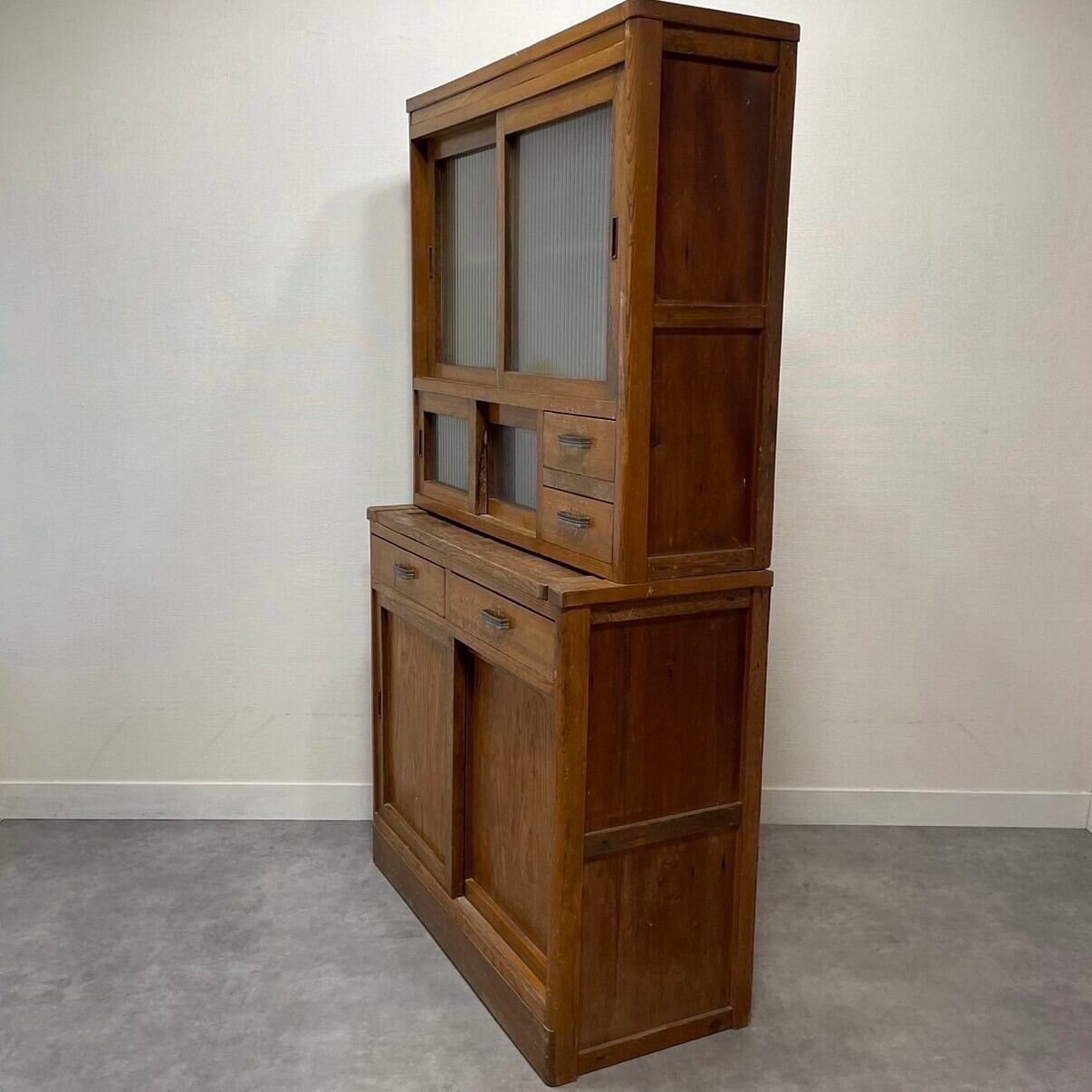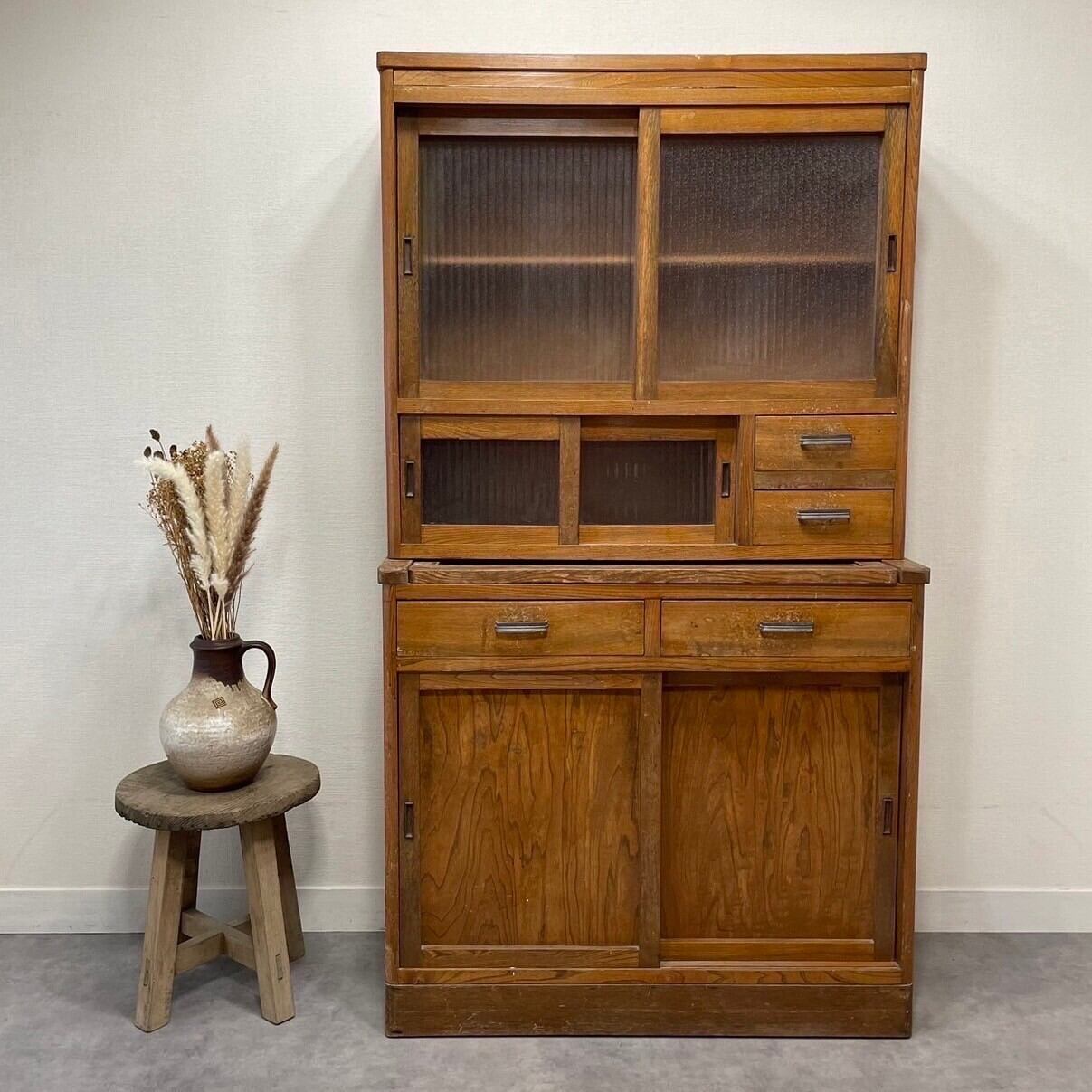 古いモールガラスの作業台付き食器棚
