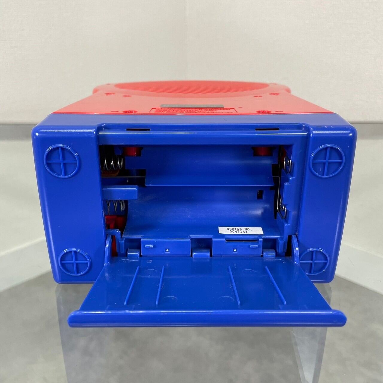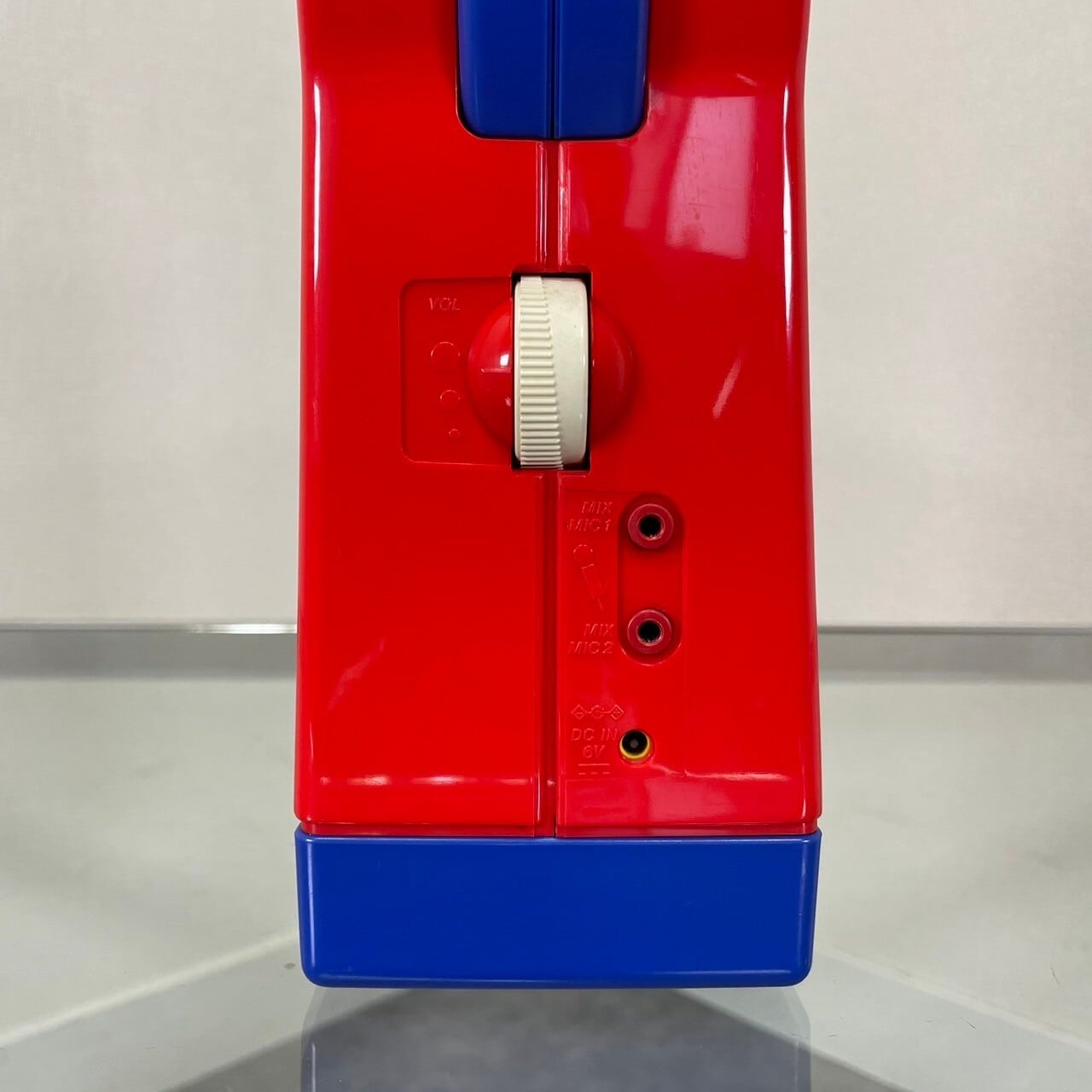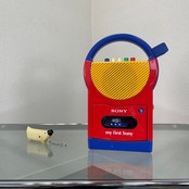 独特なフォルムに赤×青×黄色のカラフルでレトロな佇まいが可愛いカセットプレーヤーです。