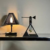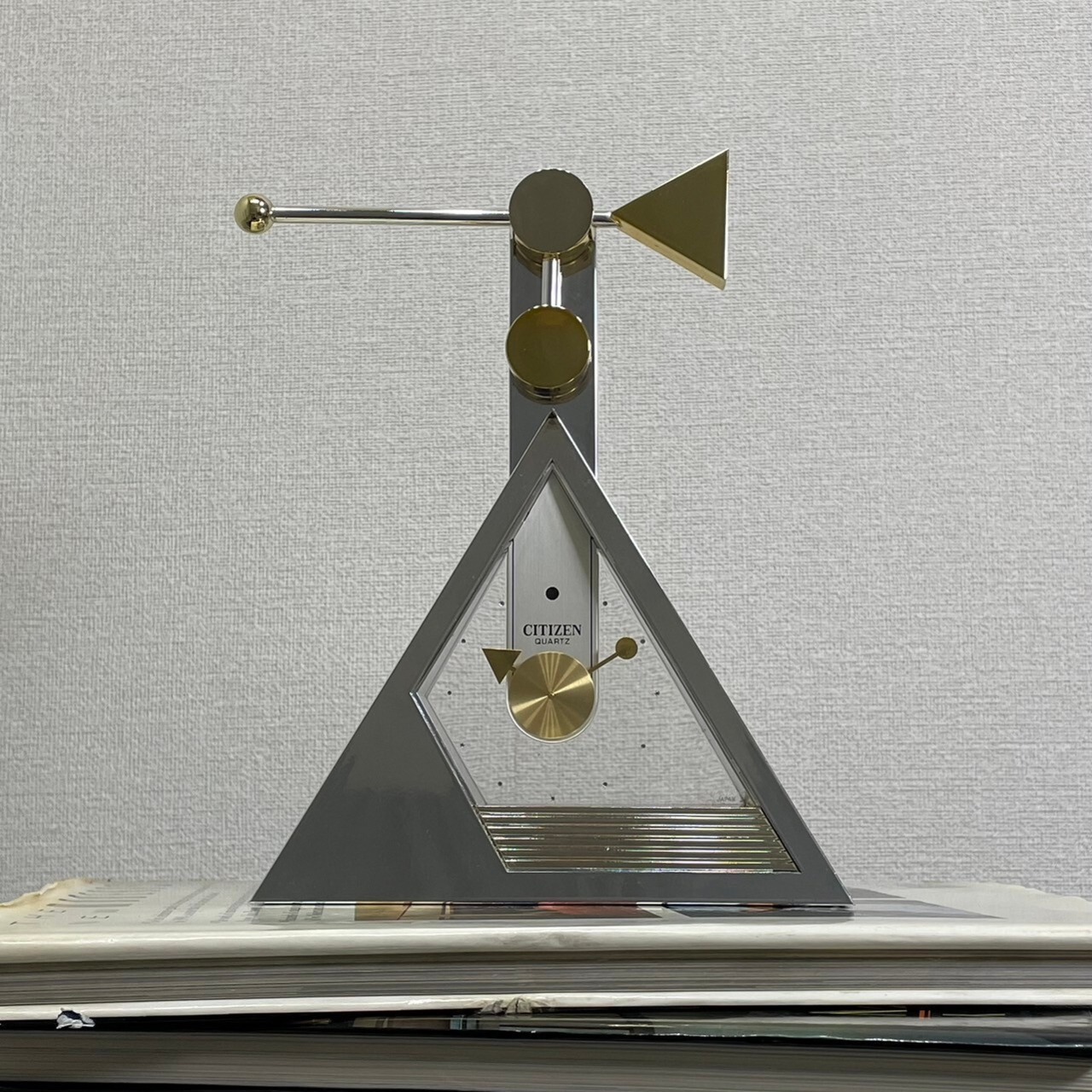 こちらも上部に磁力を利用した振り子が付いていたり、フォルム、文字盤、針、振り子等全てがシルバー×ゴールドの三角と丸で構成されていたりと遊び心溢れるユニークなデザインとなっております。