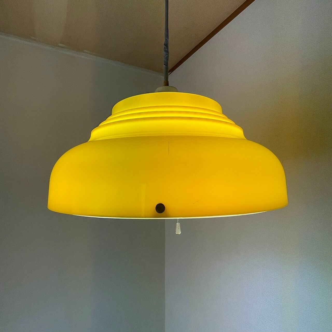 ポップなイエローの愛らしいフォルムに、何重にもなったルーバーが特徴的なレトロな佇まい。