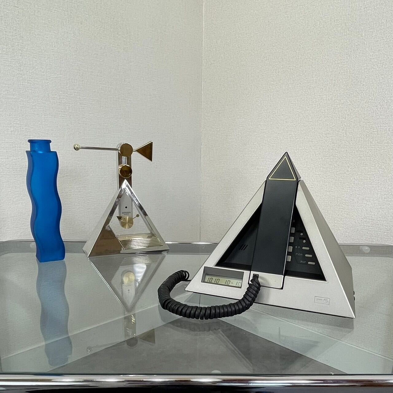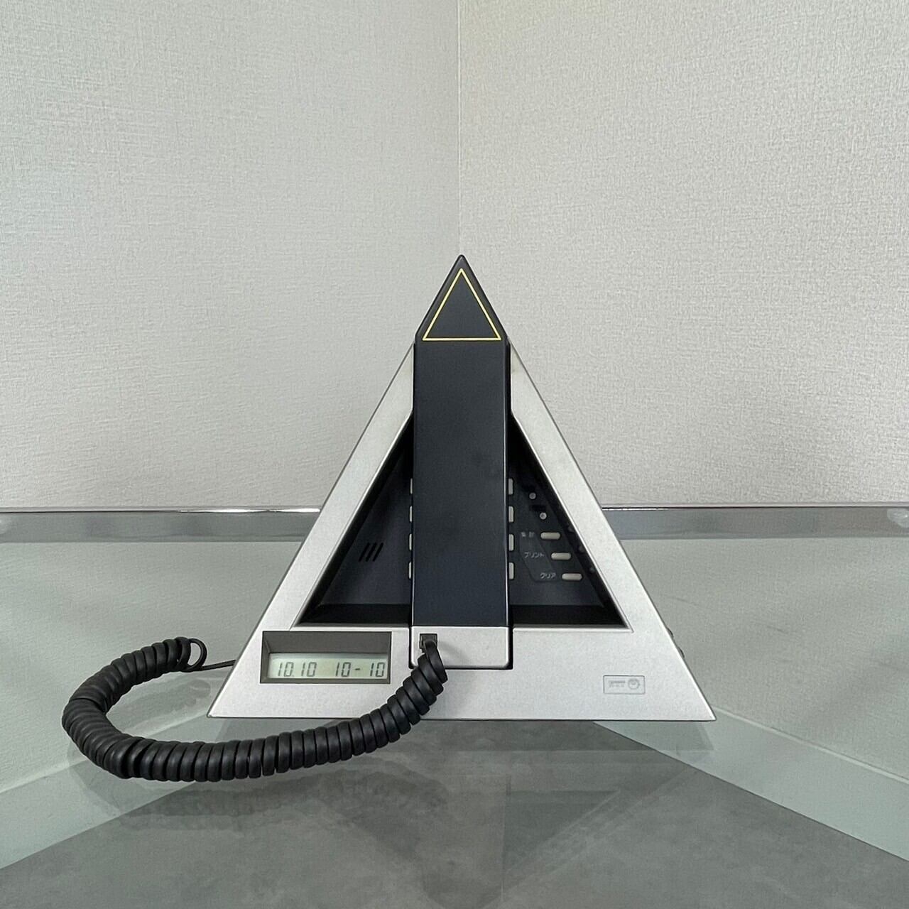 ブラック×シルバーのカラーリングに電話機の概念を覆すようなピラミッド型のシルエットとスタイリッシュな佇まいとなっており、ポストモダンの影響を感じさせます。