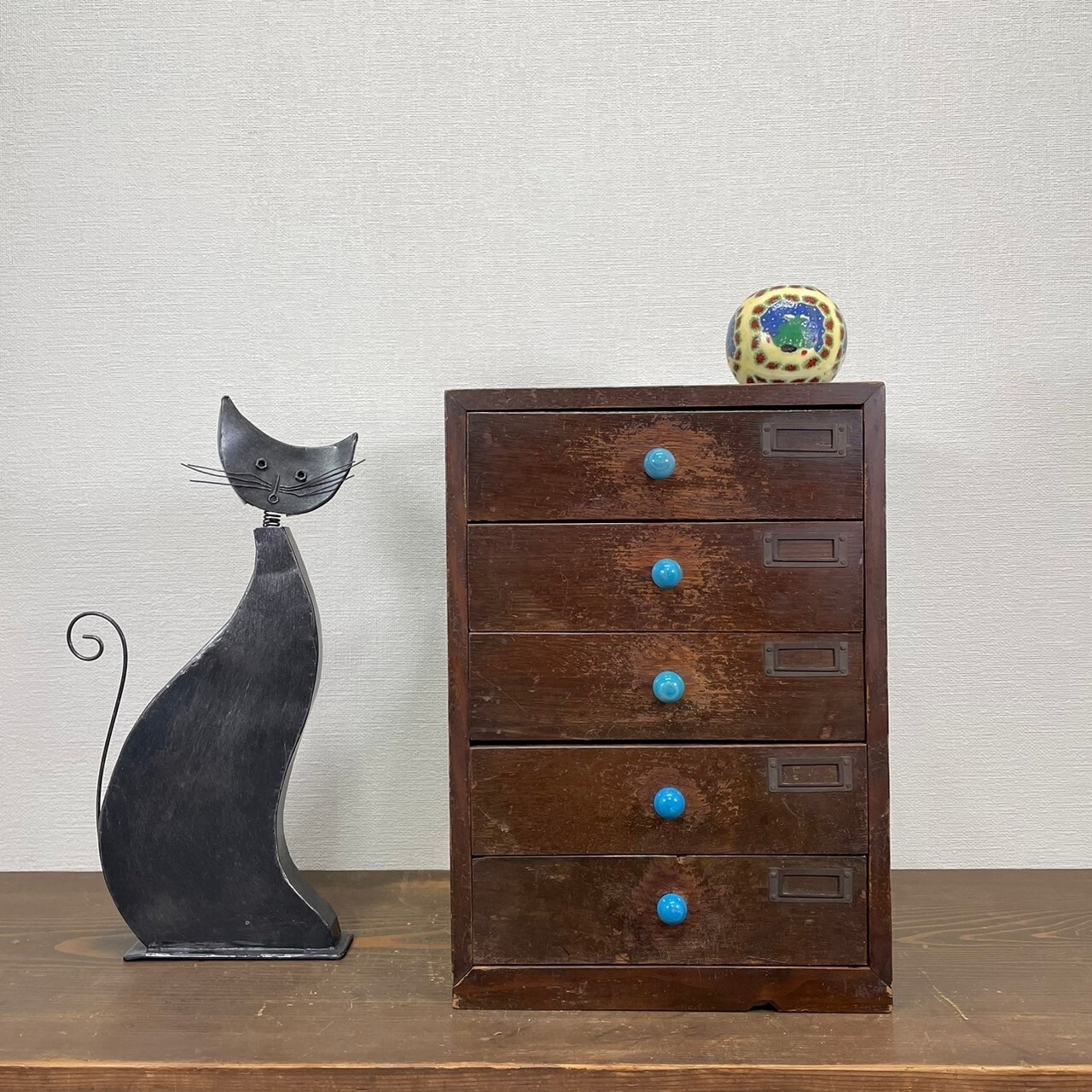 シンプルなデザインに水色のつまみ、ネームプレートがアクセントとなった上品さと可愛いさを兼ね備えた佇まいです。