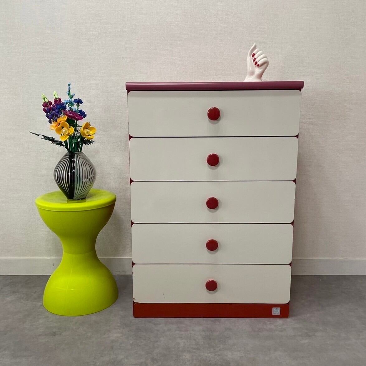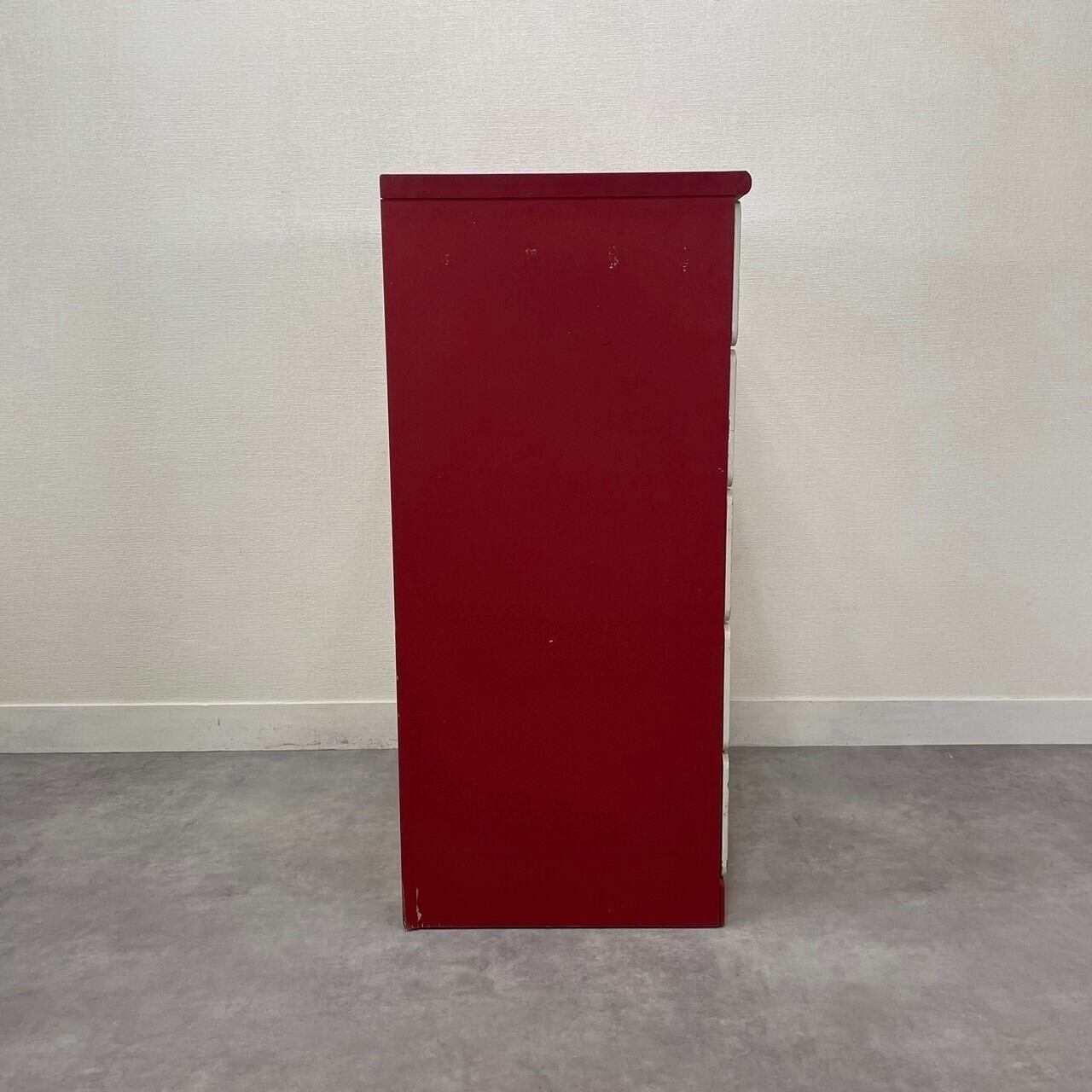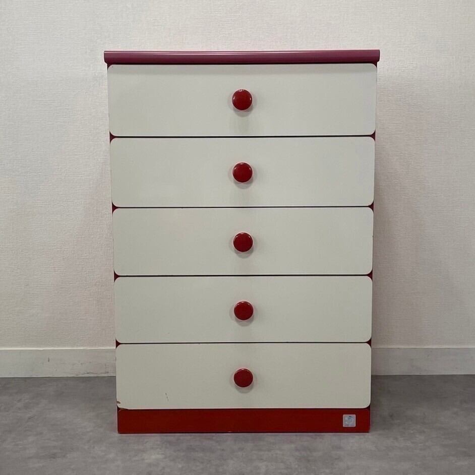 レトロポップな白×赤の5段チェスト