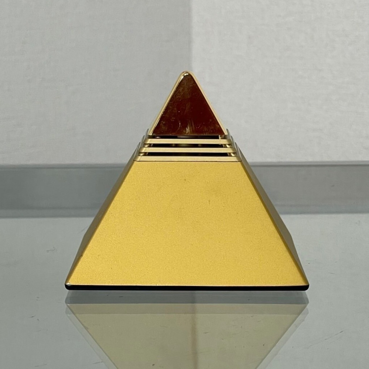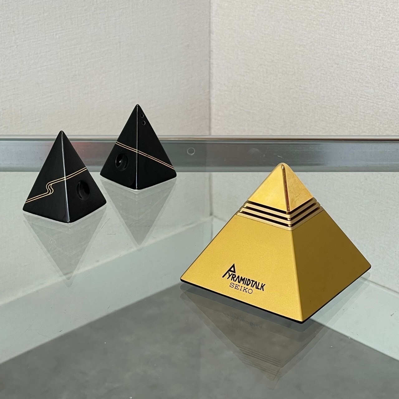 1984年に発売され正面に時刻表示のない斬新なデザイン、ピラミッドのトップに触れると時刻を読み上げてくれるというユニークな仕様で大変人気を博しました。