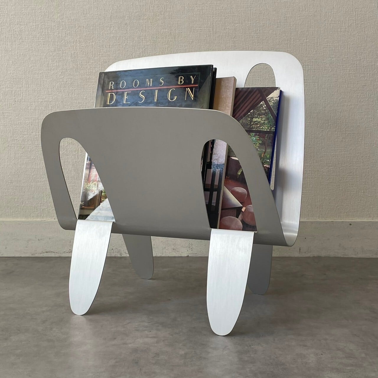 こちらはツヤ消しのアルミニウム一枚から造られたマガジンラック"PEEL"。